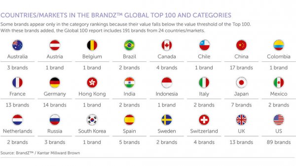 Amazon begeistert im jährlichen BrandZ-Ranking der Marktforschungsexperten von Kantar Millward Brown. Der Handelsriese steigert den Wert der Marke im Vergleich zum Vorjahr um 49 Prozent. Höhere Werte schaffen bei den Top-Platzierten nur Unternehmen aus China. Insgesamt sind die 100 wertvollsten Marken 4,4 Billionen US-Dollar wert und in einem Jahr um 750 Milliarden US-Dollar gewachsen.